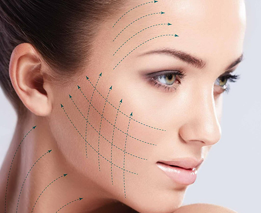 подтяжка тканей лица, подчелюстной зоны, поднятие бровей, уголков рта, устранение «брылей», разглаживание носогубных складок и «морщин марионетки».